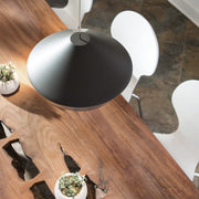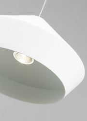 The Brummel pendant light by Sean Lavin for Tech Lighting features a sophisticated mid-century modern design with its clean sharp lines defining its spun metal shade.