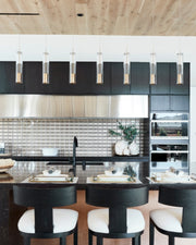 The Captra pendant light by Sean Lavin for Tech Lighting features a meticulously detailed metal spinning that outlines the fixture’s light engine and is captured inside a clear casing to create a strikingly contemporary cylindrical pendant.