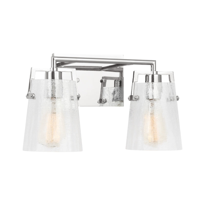 Utilizing a stylish blend of angular hardware and clear, resplendent glass, the Crofton 2 Light Vanity by Drew and Jonathan is a piece that effortlessly enhances the glamour and serenity of your bath.