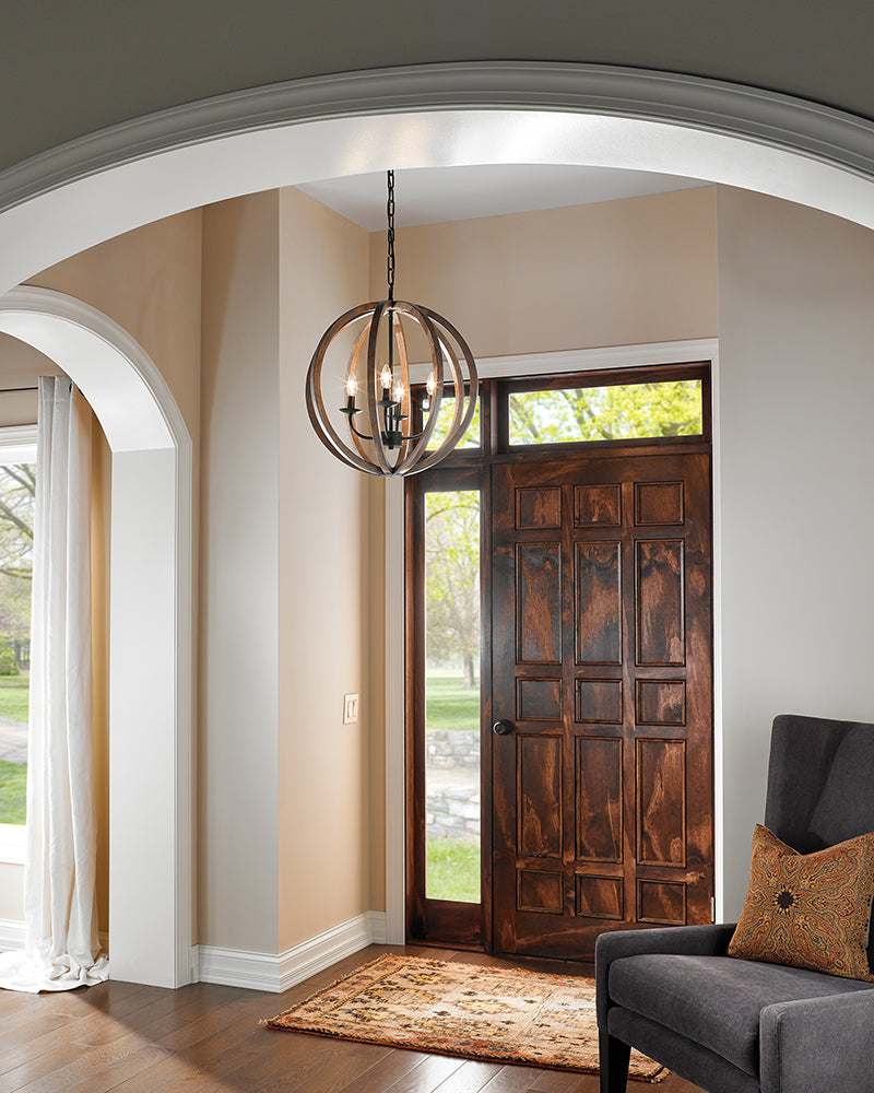 Named for a French forest from which wood is used for wine barrels, the Allier Collection features orbs made of aged oak which is kiln-dried to prevent cracking. This modern take on a traditional material and silhouette makes an elegantly rustic statement.
