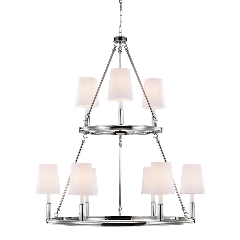 - Finish/Shade: Polished Nickel with White Fabric Shade