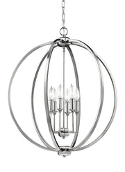 The modern orb silhouette of the Corinne Collection is interpreted in two distinct ways. In Polished Nickel, it features an Inlay Crystal detail along the inner surfaces for dramatic sparkle. In Oil Rubbed Bronze, hammered inlay detail embellishes the inner surfaces to catch light for a more rustic aesthetic. The center candles are attached by a hub giving the illusion they’re floating.