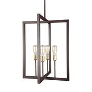 Inspired by classic lanterns, the clean, geometric silhouette of the transitional Finnegan chandelier collection by Feiss features exquisite metal work and marries two new, contrasting finishes. The square tubing of the open frame in a New World Bronze finish is in dramatic contrast to the new Burnished Brass finish of the socket cups, which brighten and bring life to this mixed-material collection. This design will perfectly complement a wide range of décor from urban, eclectic loft spaces to clean, contemporary interpretations of Colonial or nautical décor to rich, European inspired space.