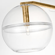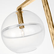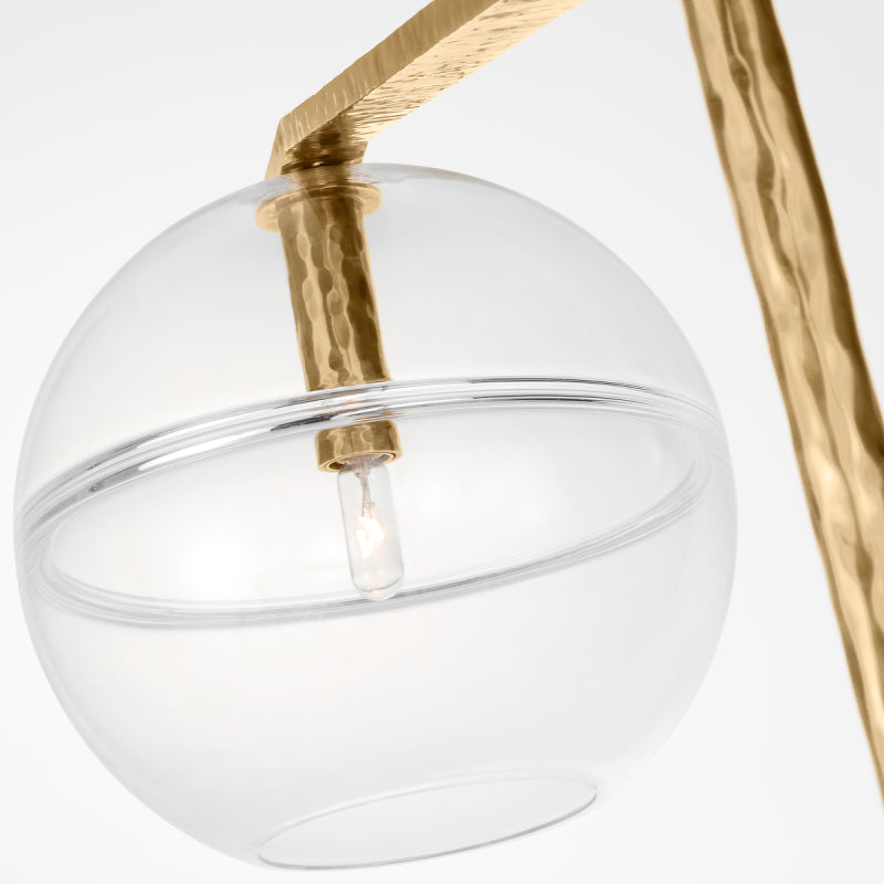 The Lowing Grande Chandelier by Sean Lavin is best described as a deconstructed modern chandelier, where glass orbs are each suspended from the sleek branchlike central hub via contrasting textured cloth-covered cords to make a distinctly alluring visual statement. While each transparent clear glass orb is perfectly spherical and smooth on the exterior surface, the interior surface features gradually thickening bands of glass artfully crafted by talented artisans to add alluring visual interest and dimension to your space.