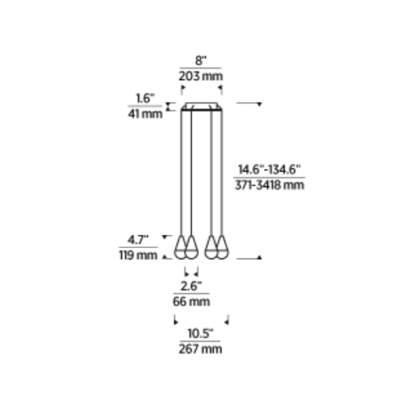 Canopy ships with 12 feet of cable per pendant which can be easily cut in the field