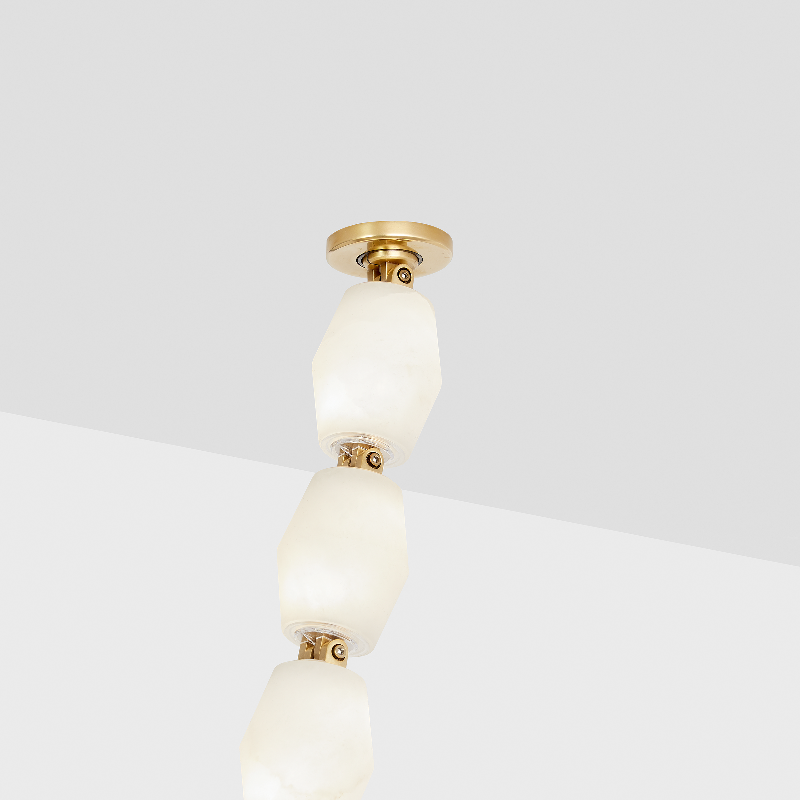 The Collier by Sean Lavin exudes luxury and sophistication. Solid faceted Alabaster Glass fully encapsulates integrated LED modules interlocked by solid brass connectors.