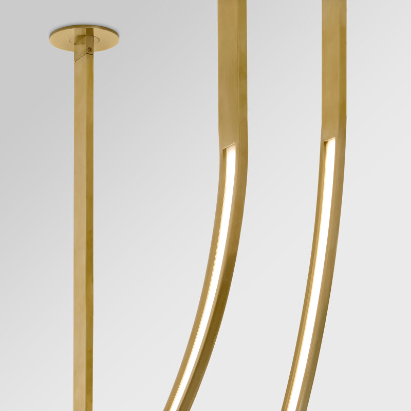 The imaginative and artistic Baku chandelier by Sean Lavin showcases multiple thin arched forms. Designed to be installed individually or as multiples in a custom configuration, this imaginative and artistic sculpture showcases thin arched forms in various sizes. Each fixture ships with Visual Comfort's patented junction box with adjustable height for unique installations. The modern chandelier will make a unique, contemporary statement in living rooms, grand entryways and bedrooms alike.