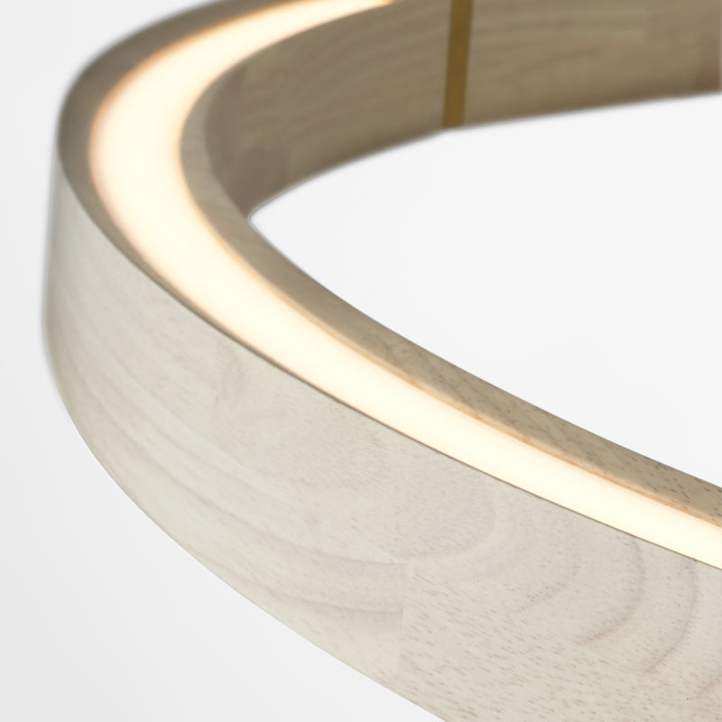 Circles of different sizes and thicknesses take center stage with the simplicity of the Ashok chandelier by Sean Lavin. Featuring a solid wood ring with brass inlay details, the fixture also has an optional collar ring. The minimalist ring chandelier will complement modern decor and can illuminate living and dining rooms, as well as entryways.