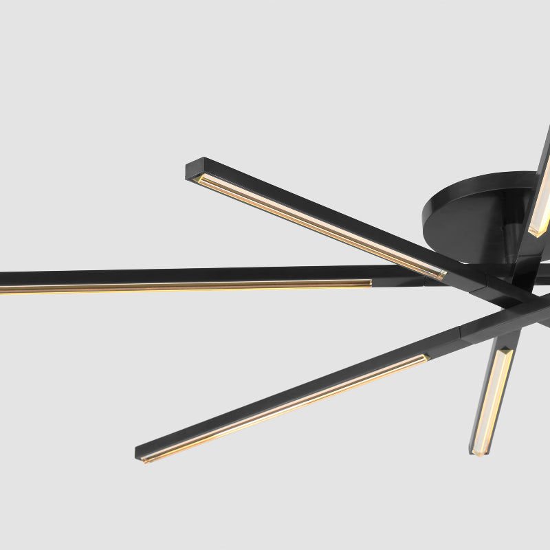 The Cityscape Flush mount by Sean Lavin has an expertly crafted frame with a brilliant geometric design. It is composed of straight LED strips in different lengths, creating a mosaic starburst effect. Make a bold statement with the Cityscape Flushmount that double as artistic masterpieces, combining form and function to elevate your space with a captivating focal point.