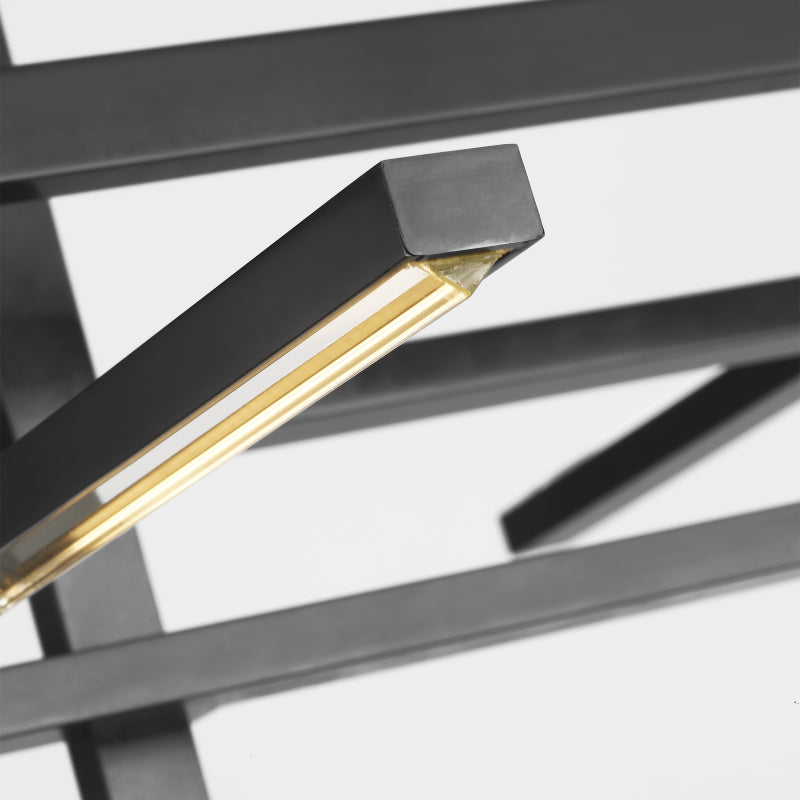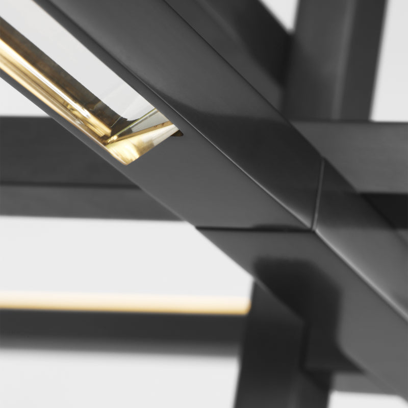 The Cityscape X-Large Chandelier by Sean Lavin has an expertly crafted frame with a brilliant geometric design. Multiple rods branch off from the center, creating intriguing intersections. Shades can be rotated to create a unique lighting experience for your space. Integrated LED lamping provides a warm, decorative ambiance for a harmonious interplay of bold form and sensible function.