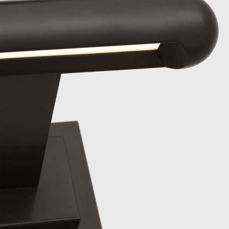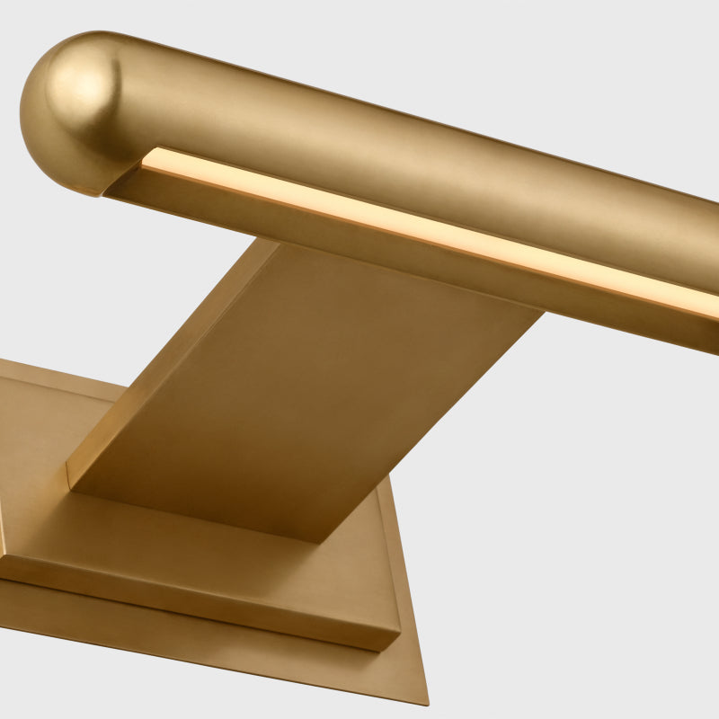 The Agra picture light by Sean Lavin showcases the purity of a simple silhouette, kept clean without any visible hardware or seams. The solid brass shade, available with hand-rubbed antique brass, bronze or polished nickel finishes, has an integrated LED light and recessed silicone diffusor. The versatile picture light will complement a variety of decor styles, from minimal modern to classic and even opulent.