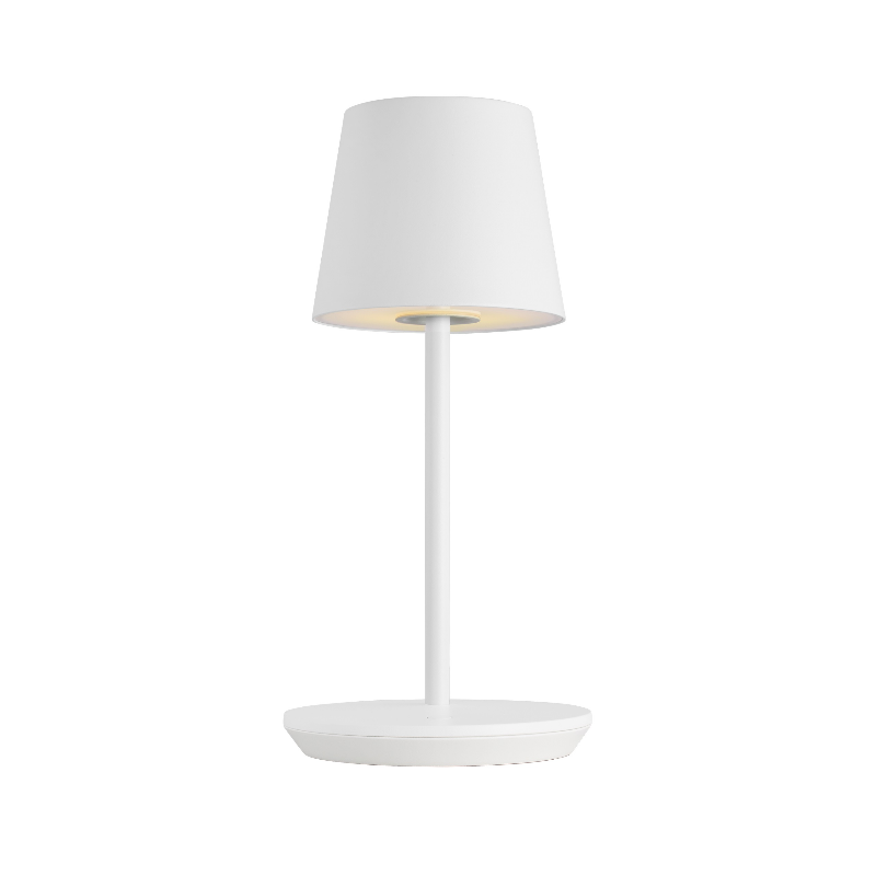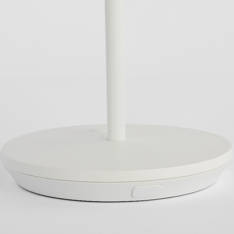 The Nevis Short table lamp by Sean Lavin is both versatile and functional. This wireless and rechargeable LED lamp emits a clean glow throughout a space. Nevis features a unique dimming function that allows for three different light settings located at the lamp's base.