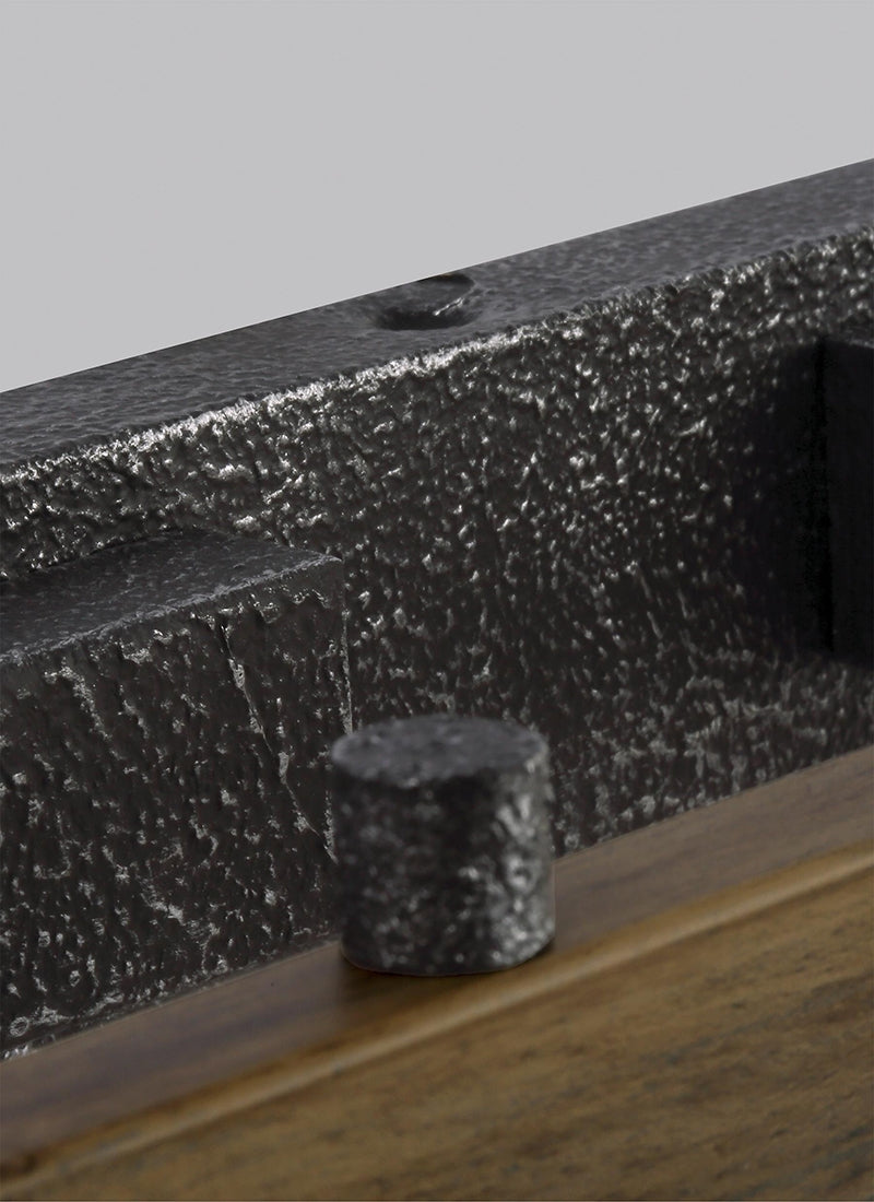 - Finish: Distressed Weathered Oak / Slate Grey Metal