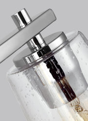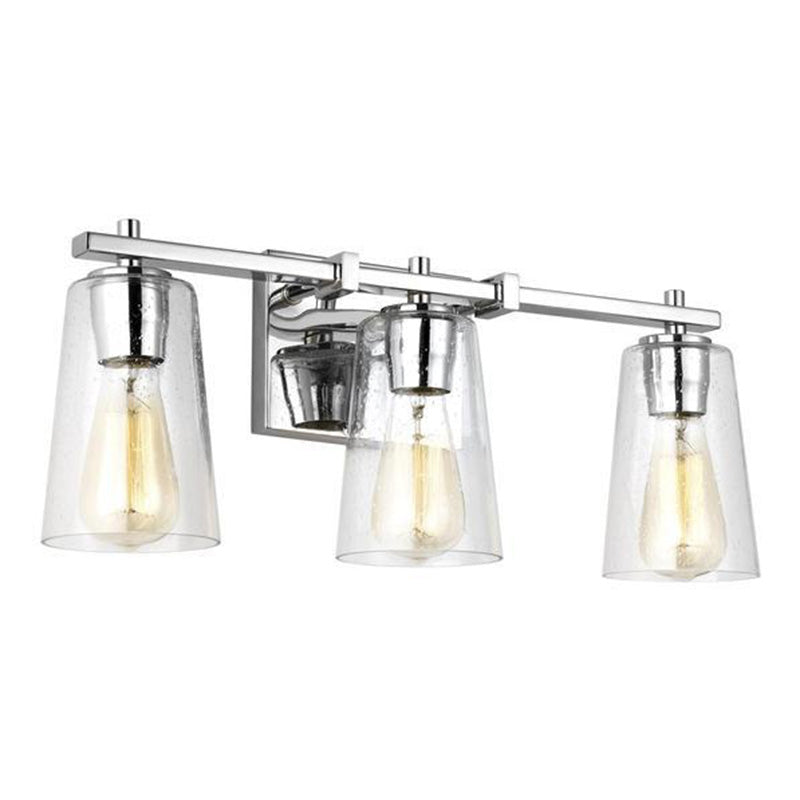 Modern details, like the clean square supports of the cross arm and sleek, rectangular backplate, are defining features of the Mercer Collection. Choose from either refreshingly bright Chrome or warm, rustic Oil Rubbed Bronze hardware for a distinct look, both with tapered Clear Seeded glass shades that complete the tailored look.