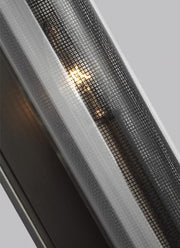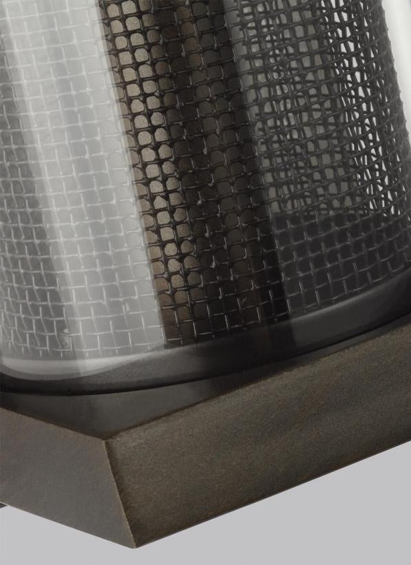 The Silo Collection of Wall Sconce lighting by Feiss makes a real statement with a vertical, cylindrical design true to its name. Silo sconces are crafted using a double-shade technique, with clear glass on the outer shade and a metal mesh lining on the inner shade. A square base and "arm" with clean, seamless edges hold the glass in place.