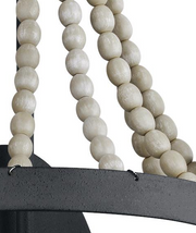 The Nori chandelier by Feiss features vintage elements like beautifully cascading Driftwood Grey Wood beads and the rustic flair of a Dark Weathered Zinc finish which brings rich texture to this classic fixture. A large Driftwood Grey Wood bead suspends from the center of the frame, adding a touch of elegance to this traditional silhouette, making it work well in both formal and more casual settings. Alternatively, the chandelier may be installed with a round bottom cap, for a cleaner look.