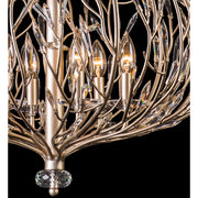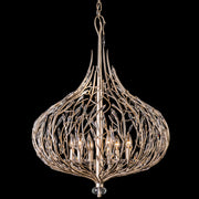 Bask is a unique crystal piece that melds together fashion-influenced shapes and nature inspired details. Its pre-installed premium crystals and gold dust finish give duality with silvery sparkles and glimmering gold. This glamorous and whimsical collection is hand-made using recycled steel and features unique elements, starting at the hand-hammered canopy.