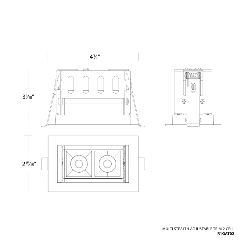 WAC R1GAT02-F Multi Stealth 2 Cell Adjustable Trim, 45° Beam