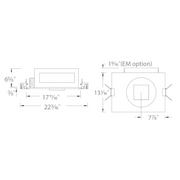 - EM fixtures provided with integral emergency battery back up with 24" lead wire remote test switch