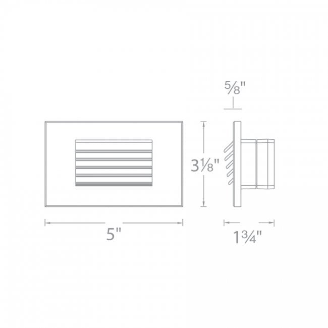 Horizontal rectangle Step Light. Designed for safety and style on stairways, patios, decks, balcony areas, walkways and building perimeters. Features an architectural design. Energy efficient for long-lasting indoor and outdoor lighting solutions. Creates an attractive, romantic impression at night.