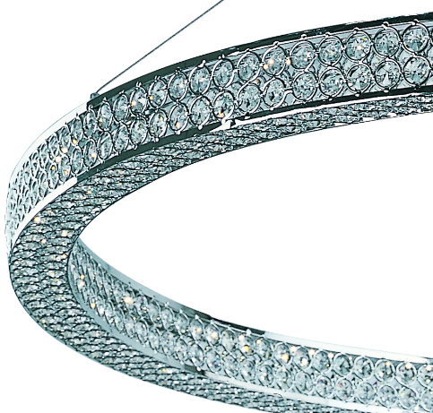 Maxim LightingFrames of metal rings encased with Beveled Crystal Jewels, are finished in Polished Chrome. Suspended by cables as if floating In air, these rings ...
