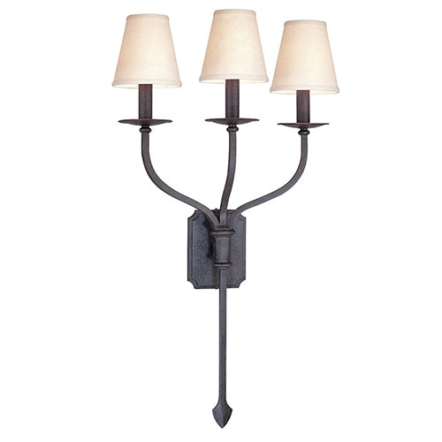 Troy LightingTroy La Brea 3-lt Interior Wall Sconce Features Finish: Textured Iron Shade Material: Linen Voltage: 120V Dimensions: Width: 17" Height: 30" E...