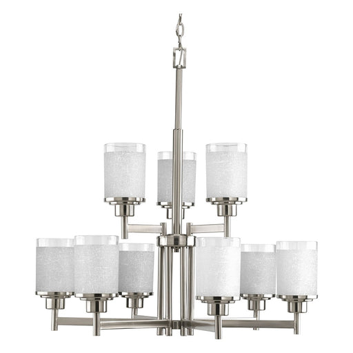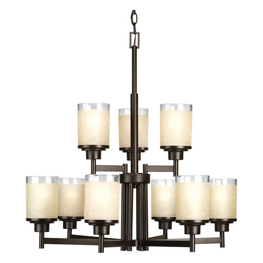 Progress LightingNine-light, 2-tier chandelier features a pleasingly simple Antique Bronze frame while visually interesting textured etched umber linen glass are co...