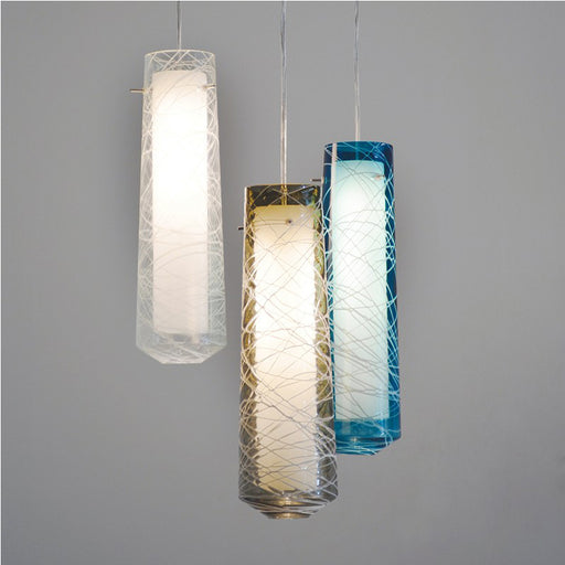 AFX LightingHand-blown glass with white pattern molten glass cane. Pendant is suspended with an 9 ft. adjustable cord. Canopy mounts to a standard junction box...