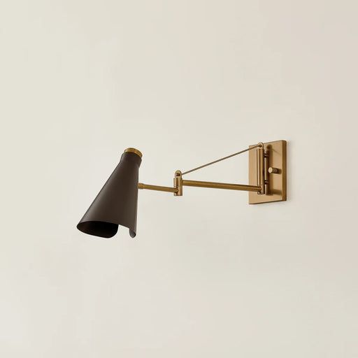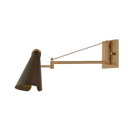 Troy LightingKobe merges retro-inspired forms with luxe materials to create an eye-catching little light. Finished in Patina Brass, the conical shade is accente...