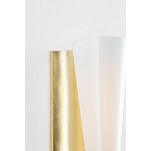 Troy LightingThis stately sconce is very architectural in form. A sculptural backplate extends from the wall to hold an opal glass shade. The softly angled shad...