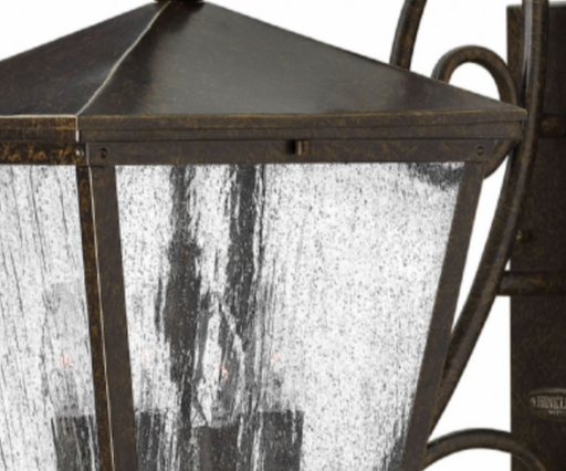 HinkleyTrellis is a traditional European hanging wall lantern design in an Aged Zinc finish with clear glass or Regency Bronze with clear seedy glass. The...