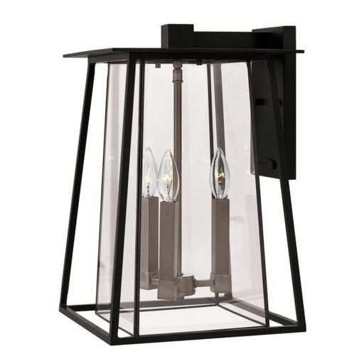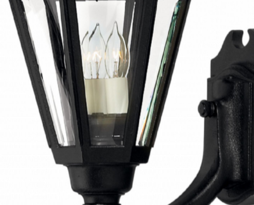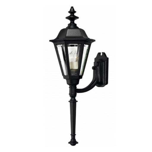 HinkleyManor House is a classic lantern design with clear beveled glass panels and a bold Black finish. Select-A-Lite options come standard with both cand...