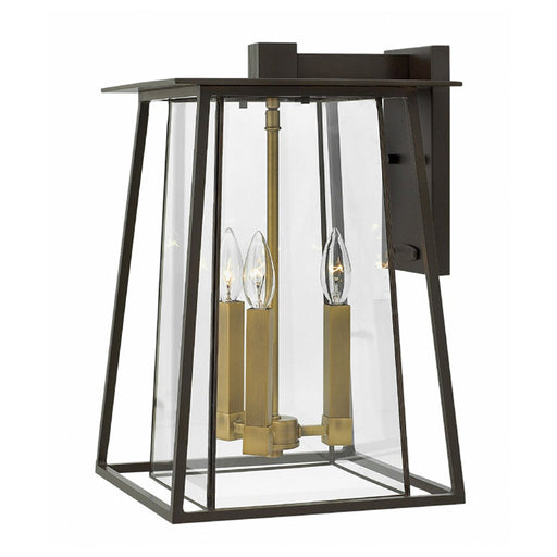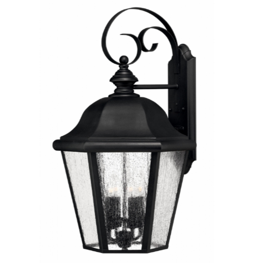 HinkleyEdgewater's classic design features durable cast aluminum and brass construction in a rich Black or Oil Rubbed Bronze finish with clear seedy glass...