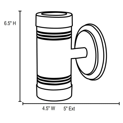 Contemporary marine grade cylinder shaped wallwasher in bronze or satin finish Features: Finish: Bronze, Satin Material: Aluminum, Glass Glass: Cl...