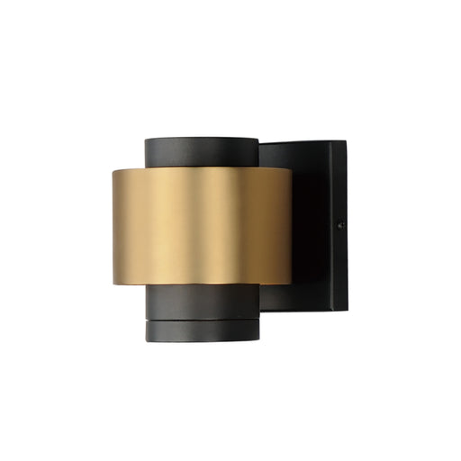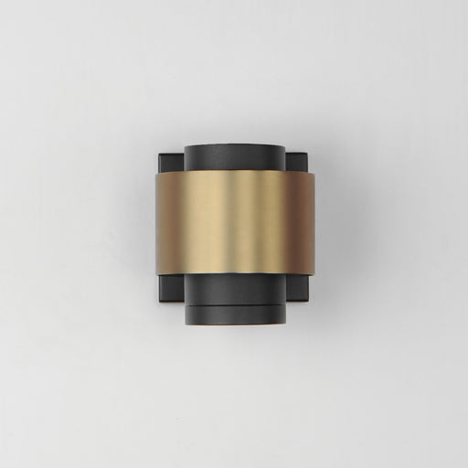 ET2Tubular shaped sconces finished in Sandy Black with a Gold stainless steel band provide light from the bottom as well as a reveal behind the band. ...