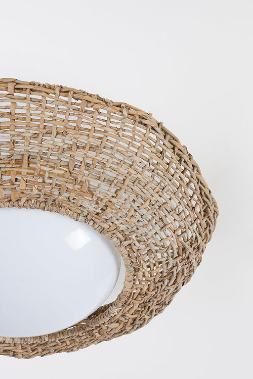 Hudson ValleyA basket-like shade made of hand-woven Abaca rope surrounds an opal glossy bulb in this stylish, modern flush mount. Designed to elevate trad...