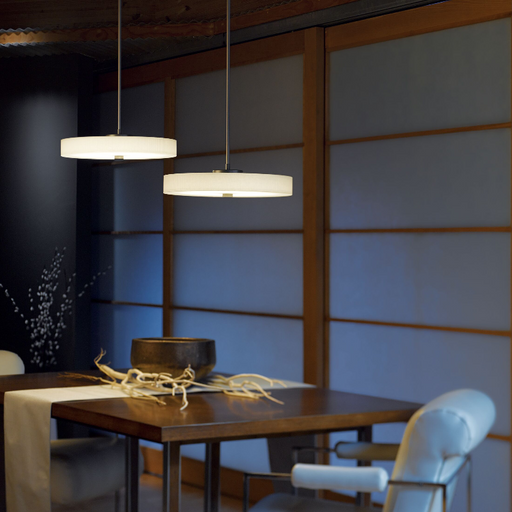 Hubbardton ForgeThis sleek, contemporary pendant features a trimless drum shade and triac dimmable dedicated LED light sources. Created by our artisans here in Ver...
