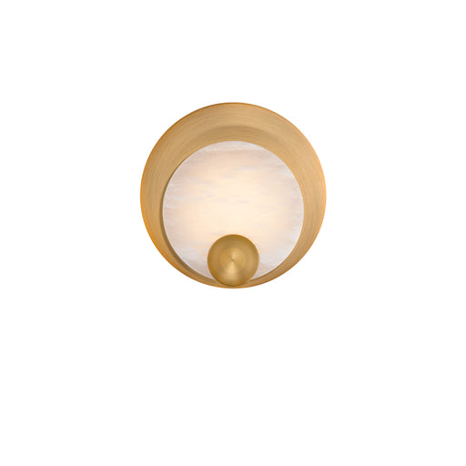 Modern FormsA celestial revelation awaits. The marbled texture and translucent beauty of a natural Spanish Alabaster shade extends from a flat brim, bathing yo...