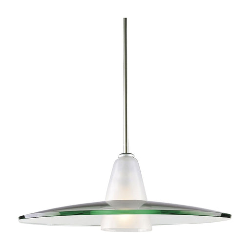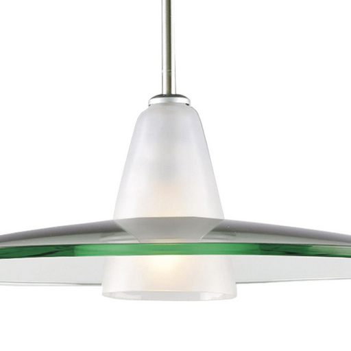 Progress LightingContemporary stem-hung one-light pendant with an etched glass cone supporting a heavy curved clear glass shade. Canopy adjusts to sloped ceilings u...