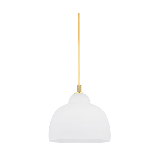 Hudson ValleyCopake features a ceramic dome-shaped pendant hanging from a Vintage Gold Leaf stem for a timeless look that is simply beautiful. The white matte i...
