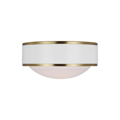Visual Comfort StudioVisual Comfort LF1002 Katie 2-lt 16” Flush Mount Features: Collection: Lauren Ralph Lauren Finish: Time Worn Brass Material: Steel, White Linen, L...