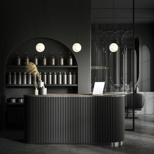 Modern FormsSleek, minimal, abstract. Designed like a larger orb possessing a smaller sphere, elegant luminosity is diffused through a laser etched crystal bal...