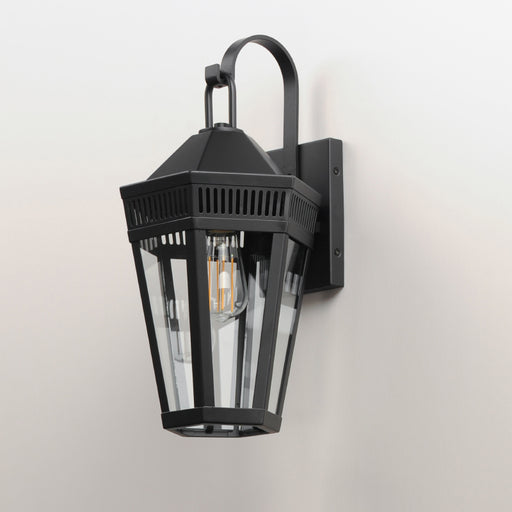 Maxim LightingStately lanterns with perforated filigree along the hood casts a beautiful lighting effect. Features Finish: Black Shade: Clear Glass Material: S...