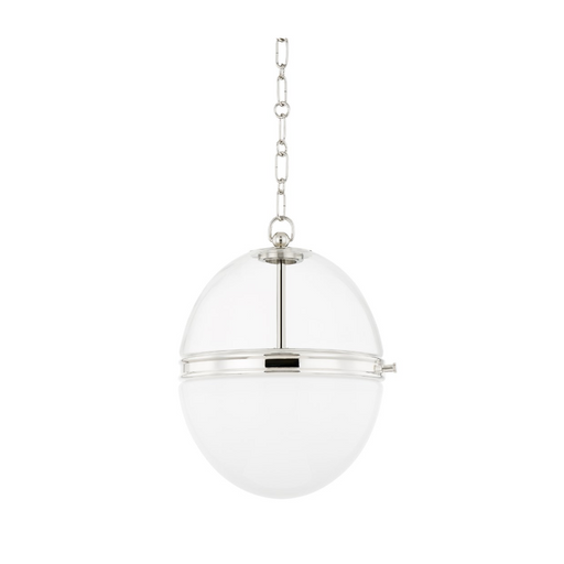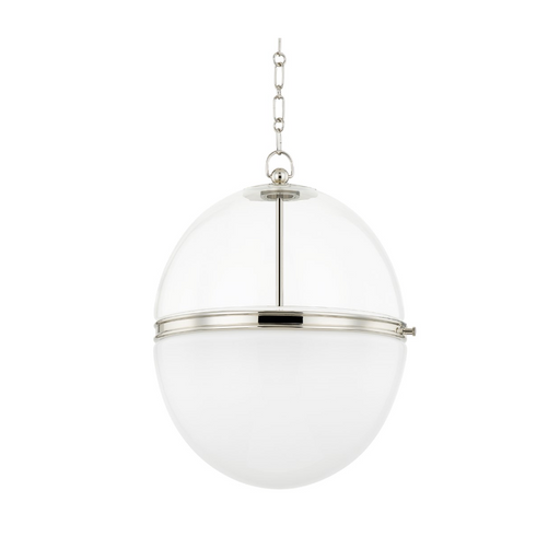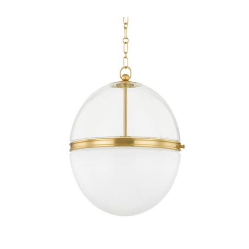 Hudson ValleyTwo different types of glass make this pendant feel special and sophisticated. A detailed Aged Brass or Polished Nickel band at the center separate...