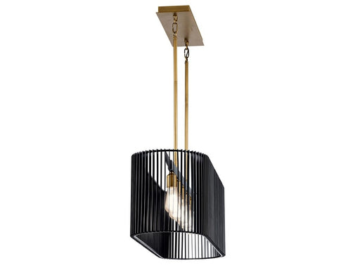 Kichler LightingThe Natural Brass finish on this Linara 5 light linear chandelier, is like jewelry to the Matte Black metal slatted shade. A refreshing twist on co...