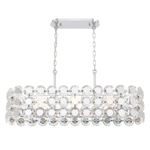 EurofaseFeatures Finish: Chrome Shade Color: Clear Crystal Material: Steel Voltage: 120V Dimmable Dimensions Length: 40" Width: 11" Height: 16" Chain Le...