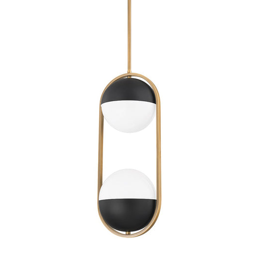 Troy LightingCapped opal glossy globes are suspended within elongated metallic bands for a look that is balanced and beautiful. The Patina Brass and Soft Black ...