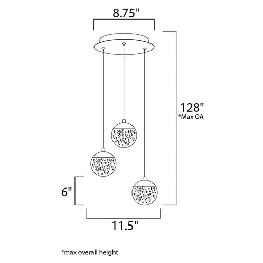 ET2Three sizes of thick Clear glass orbs are suspended displaying a small aluminum sphere encompassed within. Discretely recessed dedicated LED provid...