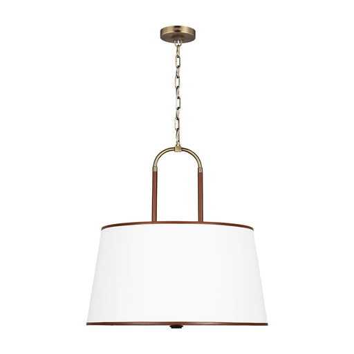 Visual Comfort StudioVisual Comfort LP1024 Katie 4-lt 26” Pendant Features: Collection: Lauren Ralph Lauren Finish: Time Worn Brass Material: Steel , White Linen, Leat...