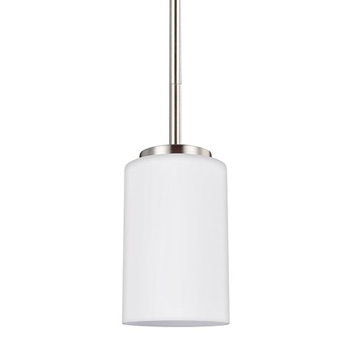 Generation LightingGeneration 61160 Oslo 1-lt 4” Mini Pendant Features Finish: Brushed Nickel, Chrome, Bronze, Midnight Black Material: Steel, Cased Opal Etched Gla...